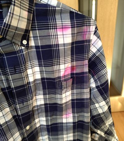 洗濯が終わって洗濯機から取り出すと、ブルーのワイシャツが部分的にピンクになっているのです。
